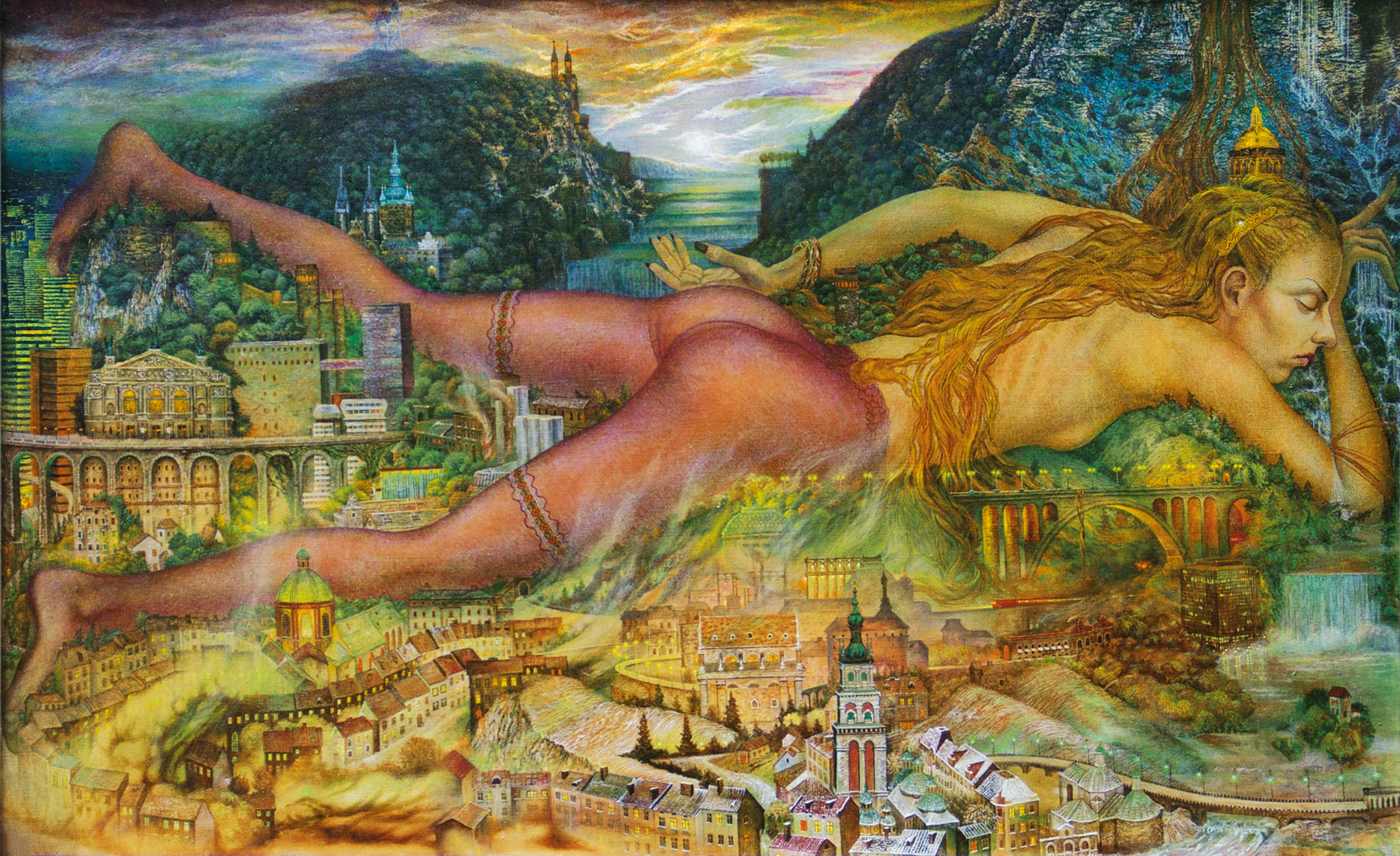 In der Ausstellung im Wien Museum sind vor allem alte Karten und Gemälde zu besichtigen. Eines der neueren Bilder zeigt die träumende Europa, dargestellt von Yurko Koch. 1994 gemalt, kurz nachdem der Ostblock zerfiel, zeigt es die schlafende Mythengestalt auf der Stadt Lemberg. Auch wenn Galizien als Kronland schon nach dem Ende des Ersten Weltkrieges nicht mehr als solches existierte, teilte sich Europa am Ende des 20. Jahrhunderts noch stärker in zwei Lager auf.