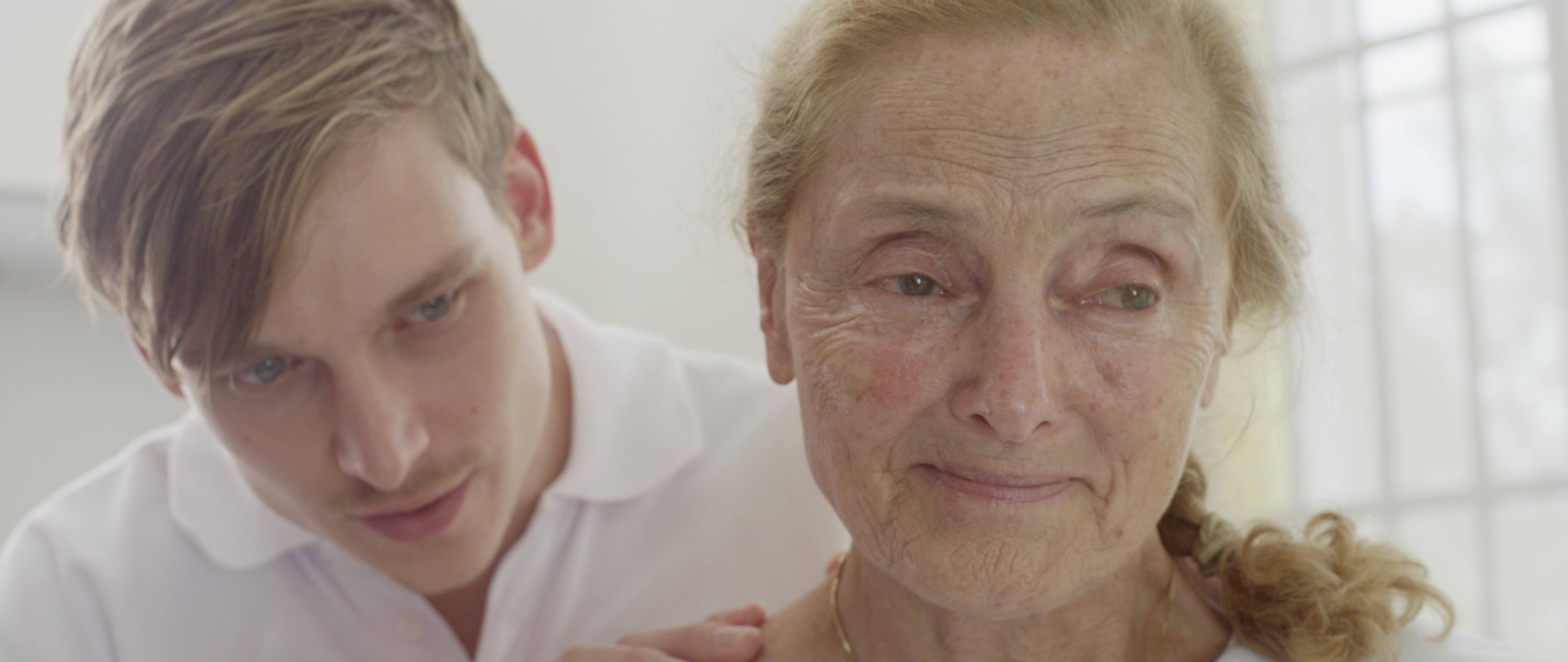 Plötzlich findet man sich in der Vergangenheit wieder: drei Monate zuvor, in Farbe. Karl Streiner bestreitet seinen ersten Tag als Zivildiener. Nachdem er sein Studium in Heidelberg abgeschlossen hat, lebt er nun wieder in Wien. Er wird für die geriatrische Abteilung eines Krankenhauses eingeteilt. Es macht ihm Spaß, doch schnell macht er Bekanntschaft mit der Alzheimer-Kranken Frau Ecker. Erni Mangold sticht in ihrer Rolle als Julia Ecker besonders hervor. Beeindruckend glaubwürdig spielt sie die vom Leben gezeichnete Patientin, die nichts auf die Meinung anderer gibt und so dem Krankenhauspersonal das Leben schwer macht und letztlich auch im Leben von Karl eine tragende Rolle spielt. Wenig überraschend also, dass sie mit dem Schauspielpreis der Diagonale 2014 ausgezeichnet wurde. Sie ist ein schwieriger Fall und „mit Absicht boshaft“. Doch irgendwie gelingt es Karl schon nach wenigen Tagen, einen Draht zu ihr herzustellen. Er liest ihr aus dem Roman „Die Geier-Wally“ vor, es entsteht eine besondere Verbindung zwischen den beiden so unterschiedlichen Charakteren. Die alte Frau erfährt durch ihn einen Energieschub, der die bis dahin Bettlägerige flotten Schrittes tanzen lässt. Bald will die Patientin nur noch von ihrem Liebling Karl betreut werden, was ihm schließlich zum Verhängnis wird.