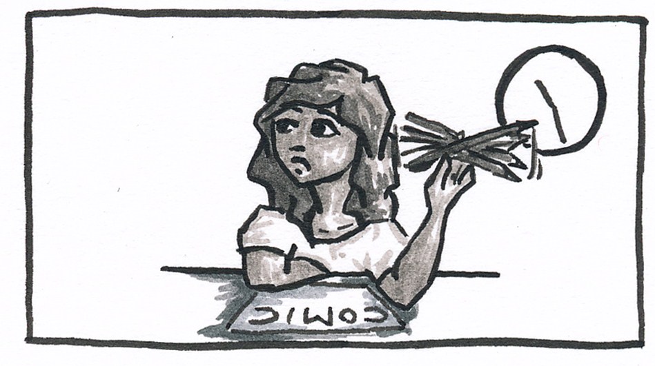 Tipp: Die LeserInnen folgen dem Blick einer Figur, indem die Strichstärke variiert wird und Linien zusammenlaufen.