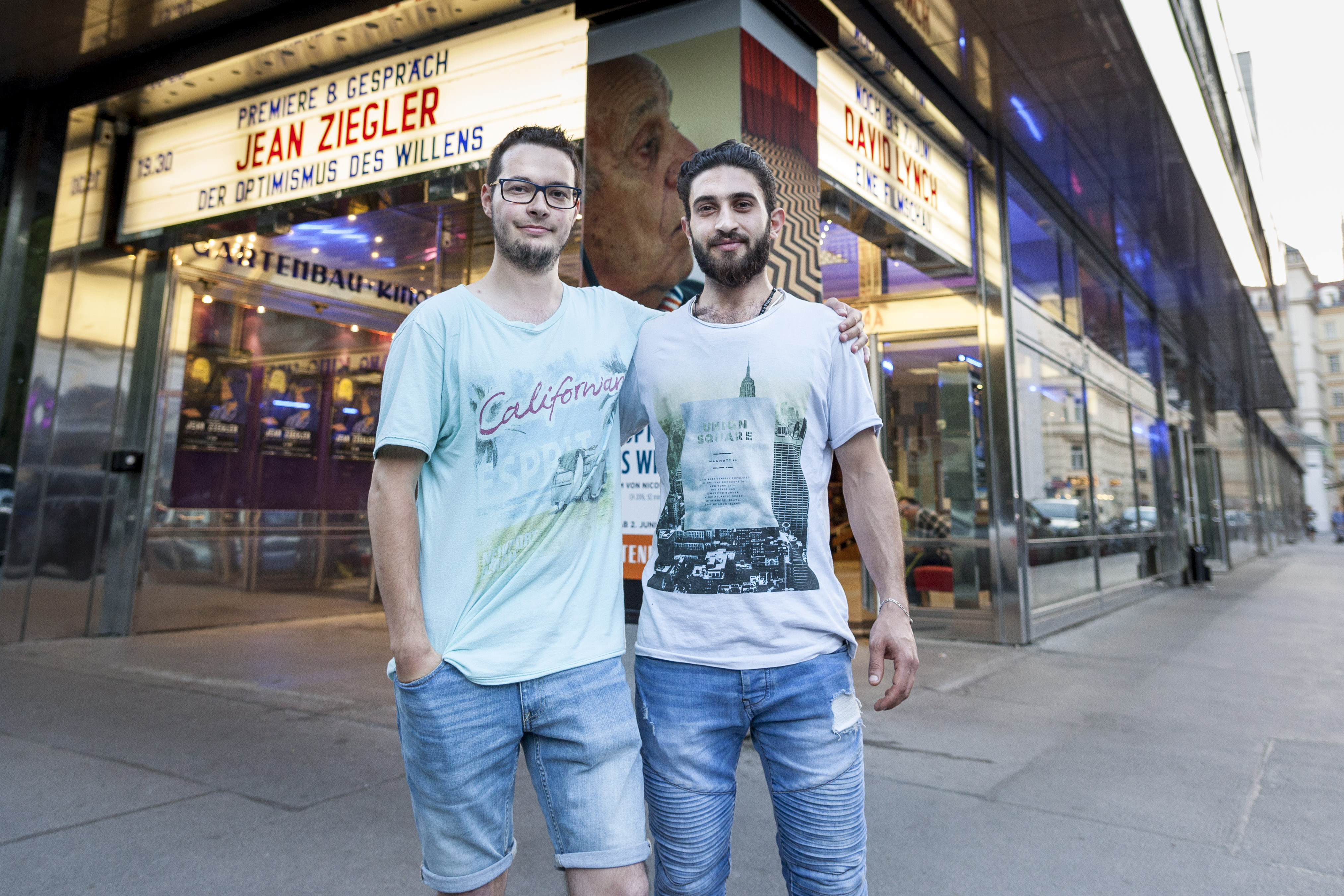 Ich bin mit zwei jungen Männern verabredet, die mir von ihrer Freundschaft erzählen wollen. Als Treffpunkt haben wir das Gartenbaukino gewählt, weil sie bei ihrer ersten Verabredung auch im Kino waren und Kung Fu Panda gesehen haben. Yousef ist 23, hat einen melancholischen Blick und trägt einen dichten Bart. Manuel ist 22 und man sieht ihm seine Freundlichkeit auf den ersten Blick an. Ich sehe sie, bevor sie auf mich aufmerksam werden und kann die Vertrautheit zwischen den beiden schon von weitem erkennen.