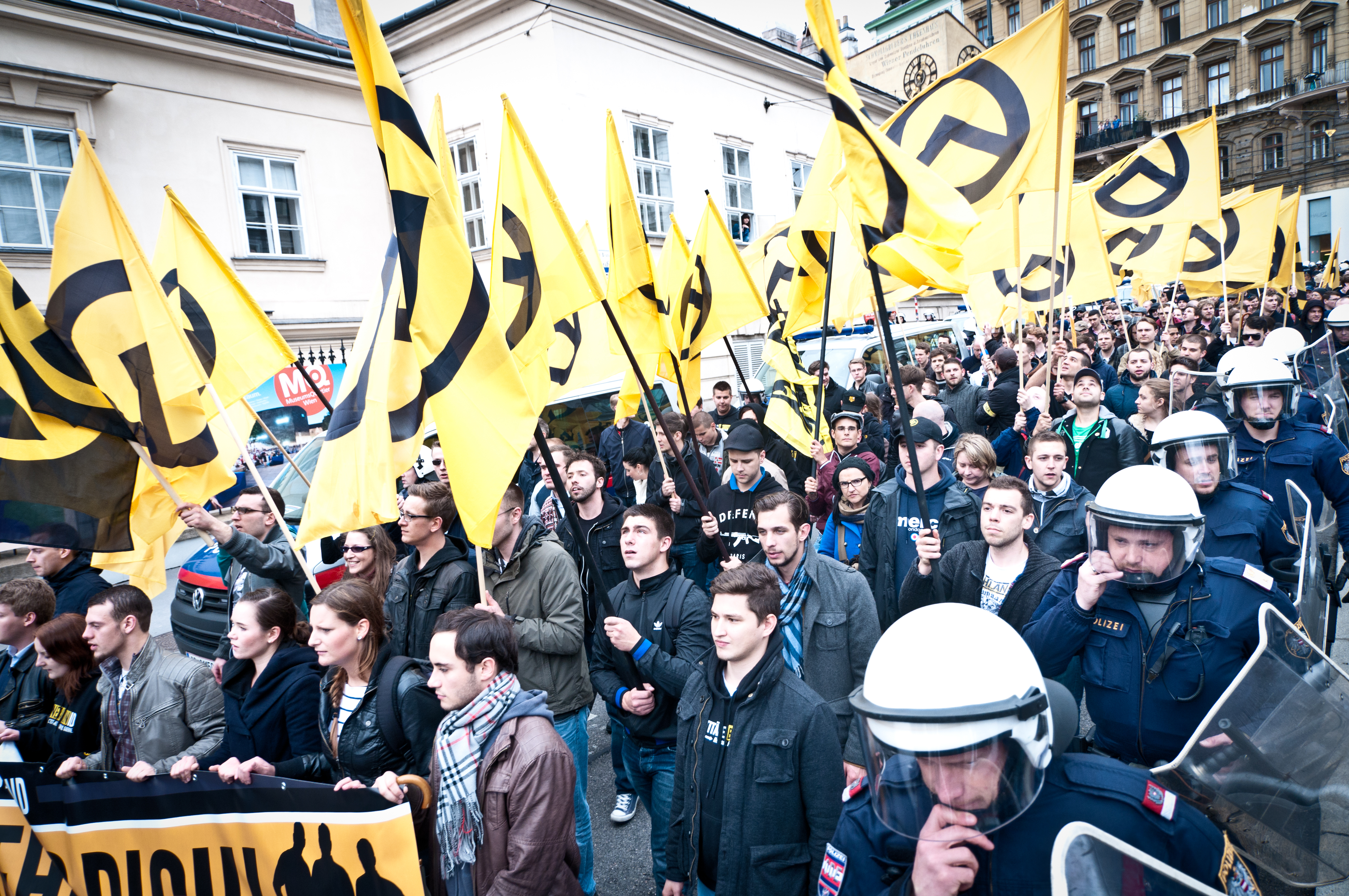 Spätestens mit ihrer „Gegenbesetzung“ der Votivkirche im Februar 2013 haben die Identitären in Wien, zumindest in linken Kreisen, auf sich aufmerksam gemacht. Die Aktion sollte dazu dienen den wochenlangen Protest und Hungerstreik von Refugees, der sich vom Sigmund-Freud-Park in die Votivkirche verlagert hatte, möglichst medienwirksam zu stören und zu delegitimieren. „Das wäre doch gar nicht nötig gewesen.“, werden sich an dieser Stelle einige denken, sind doch die Anliegen von Geflüchteten der xenophoben Mehrheitsgesellschaft in Österreich sowieso wurscht - es ist ja nicht so als wären Krone, Österreich und Heute den Identitären nicht schon zuvorgekommen. Ein wichtiger erster Schritt in Richtung „konservativer Revolution“ wurde gesetzt.