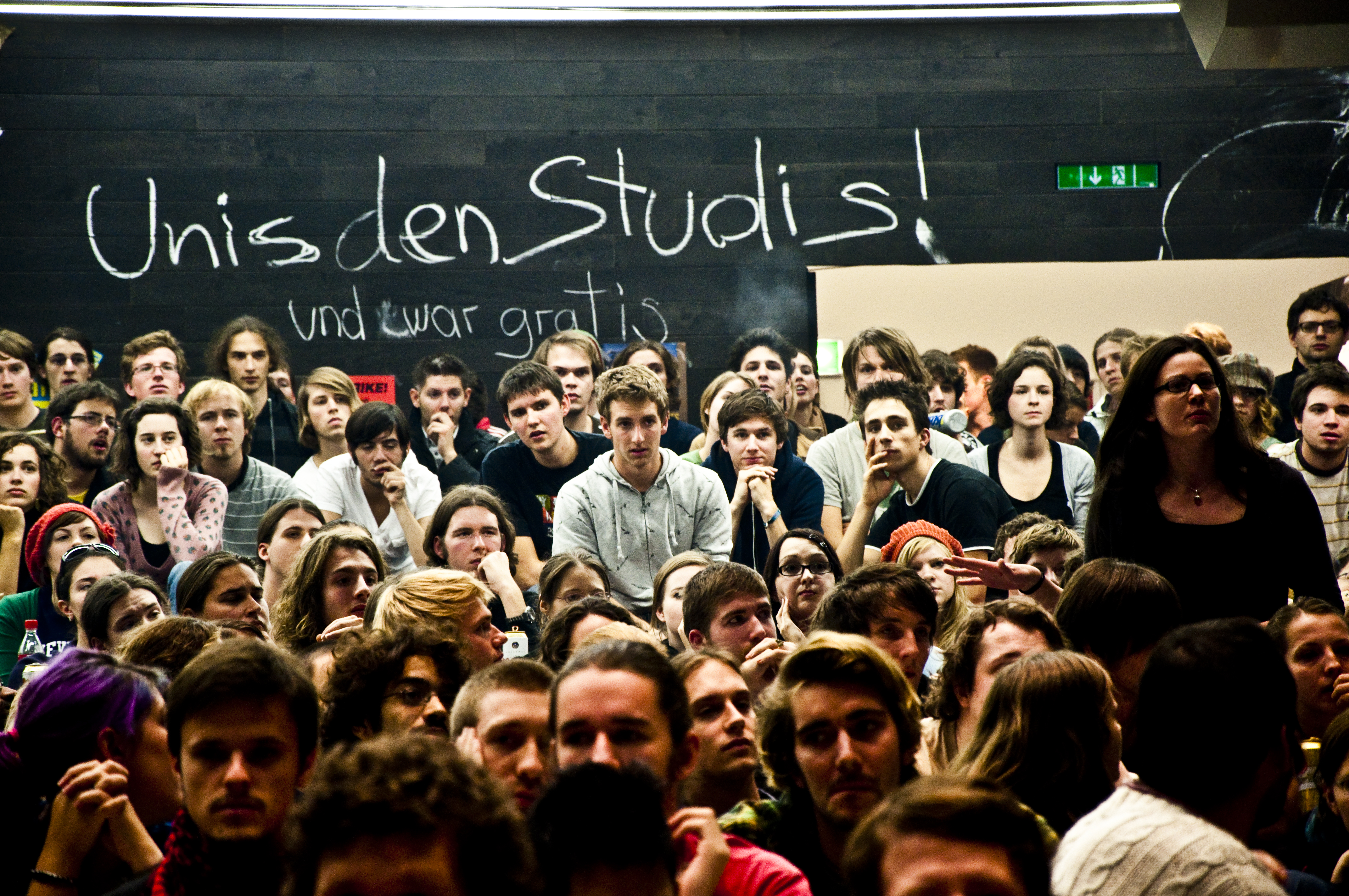 Schon im Jahr 2009 sollte es zu neuen Protesten kommen, die unter dem Titel #unibrennt – jedenfalls der medialen Rezeption nach – als die größten Bildungsproteste der vergangenen Jahre in die Geschichte eingehen sollten. „Die Proteste waren, abgesehen von der Besetzung als Protestform, weit nicht so radikal, wie sie nach außen vielleicht gewirkt haben“, erinnert sich Sigi Maurer, die damals ÖH-Vorsitzende war. „Der Fokus vieler Arbeitskreise war die Verbesserung der individuellen Situation an der Universität, mit der Zusatzforderung nach ECTS-Punkten für den Aktivismus im Audimax. Auch daran zeigt sich, wie weit die Durchdringung der Gesellschaft, auch der Studierenden, mit ökonomischen Prinzipien vorangeschritten ist“, stellt Maurer fest und ergänzt: „Das wäre eine Möglichkeit gewesen, darüber nachzudenken, was das Ziel von Lehre und Studium sein sollte – das haben die meisten Universitäten aber verabsäumt.“
