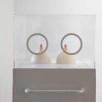 1978, Kunsthalle Düsseldorf: Eine hochschwangere Braut im weißen Kleid mit Schleier, Schnullermaske und Schnullerhaube sammelt Spenden für die Reliquie des Heiligen Erectus.